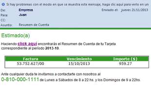 Una vez programadas la campañas, procedemos a enviar masivamente los e-mails y cada uno de sus clientes recibirá (casi de inmediato) en su casilla los datos de facturación y el acceso a su factura online.